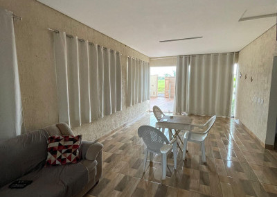 Lindo rancho mobiliado, em boa construção, situado no Residencial Riviera dos Lagos, com comércio e a Marina Santa Clara próximo, e, ao lado do Clube Grandes Lagos Resort e Parque Aquático. Ele apresenta: